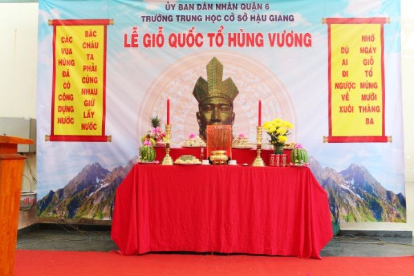 Lễ giỗ quốc tổ Hùng Vương, mùng 10 tháng 3 al năm 2021 được tổ chức trang nghiêm tại trường THCS Hậu Giang (Thứ Hai 19/4/2021). Về dự lễ với sự có mặt của ông Từ Vĩnh Thành - Chủ tịch UBND P6Q6, bà Lê Nguyễn Kiệt Anh Thư - CV bậc THCS PGD Q6, đại diện CMHS nhà trường, toàn thể CB-GV-NV và học sinh: Kính cẩn nhớ ơn tổ tiên và nguyện cầu bình an, hạnh phúc cho mọi người, mọi nhà!